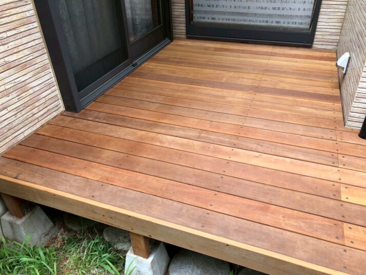 お庭のウッドデッキをウリン材にてリニューアルしました。