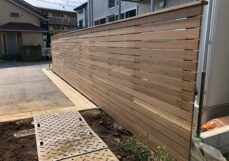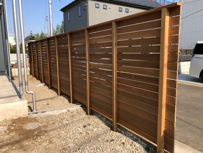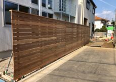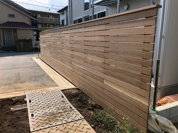新築の境界ラインにウリン材にてウッドフェンスを新設しました。