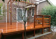 古くなったお庭のウッドデッキをウリン材にてリニューアルしました。