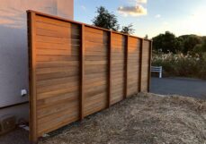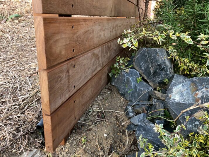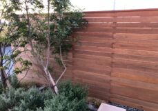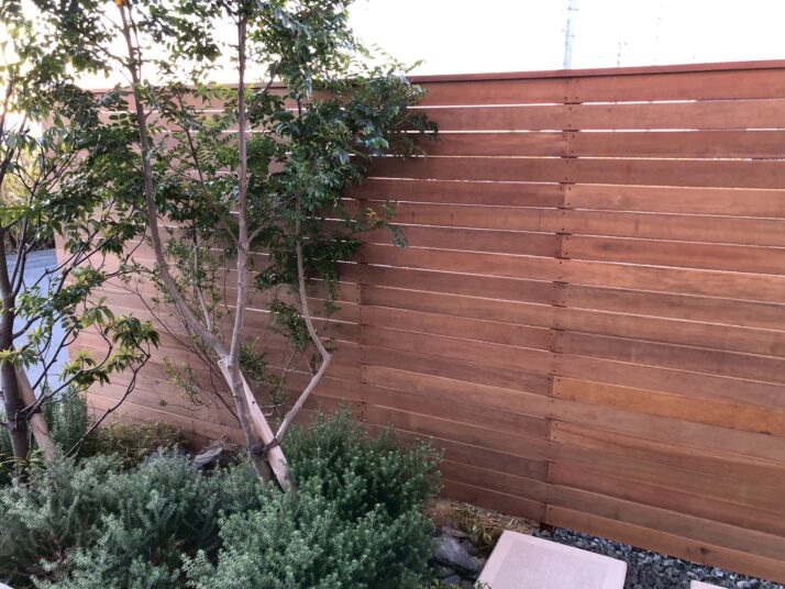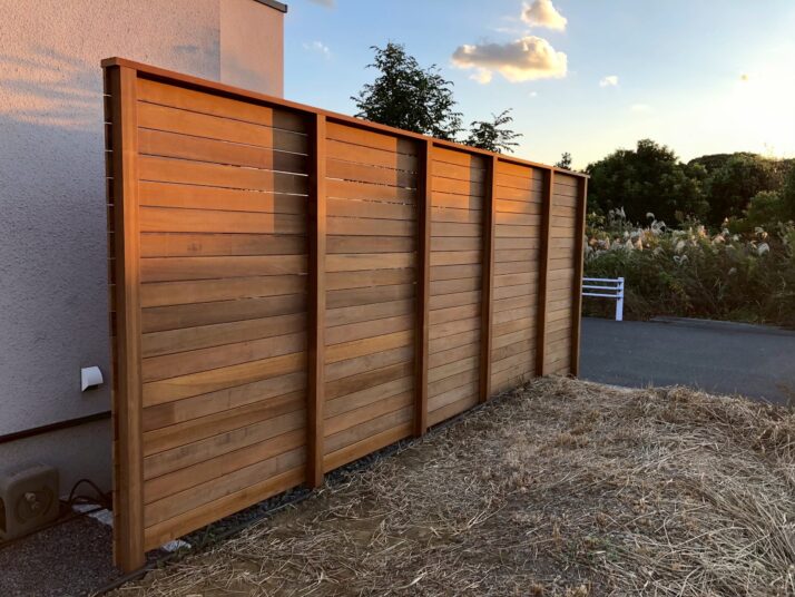 隣地境界の目隠しフェンスをウリン材にて施工しました。