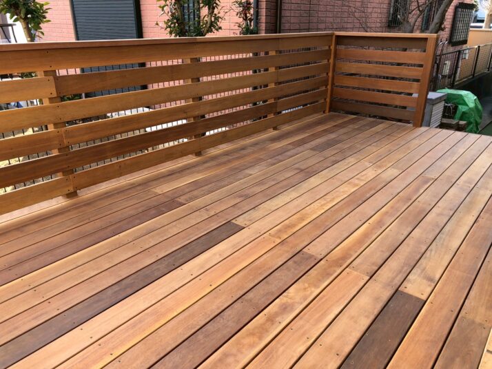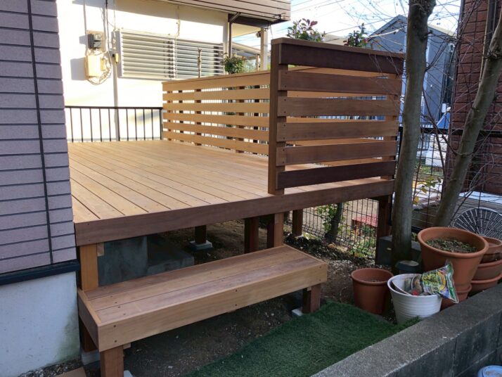 古くなったお庭のウッドデッキをウリン材にてリニューアルしました。